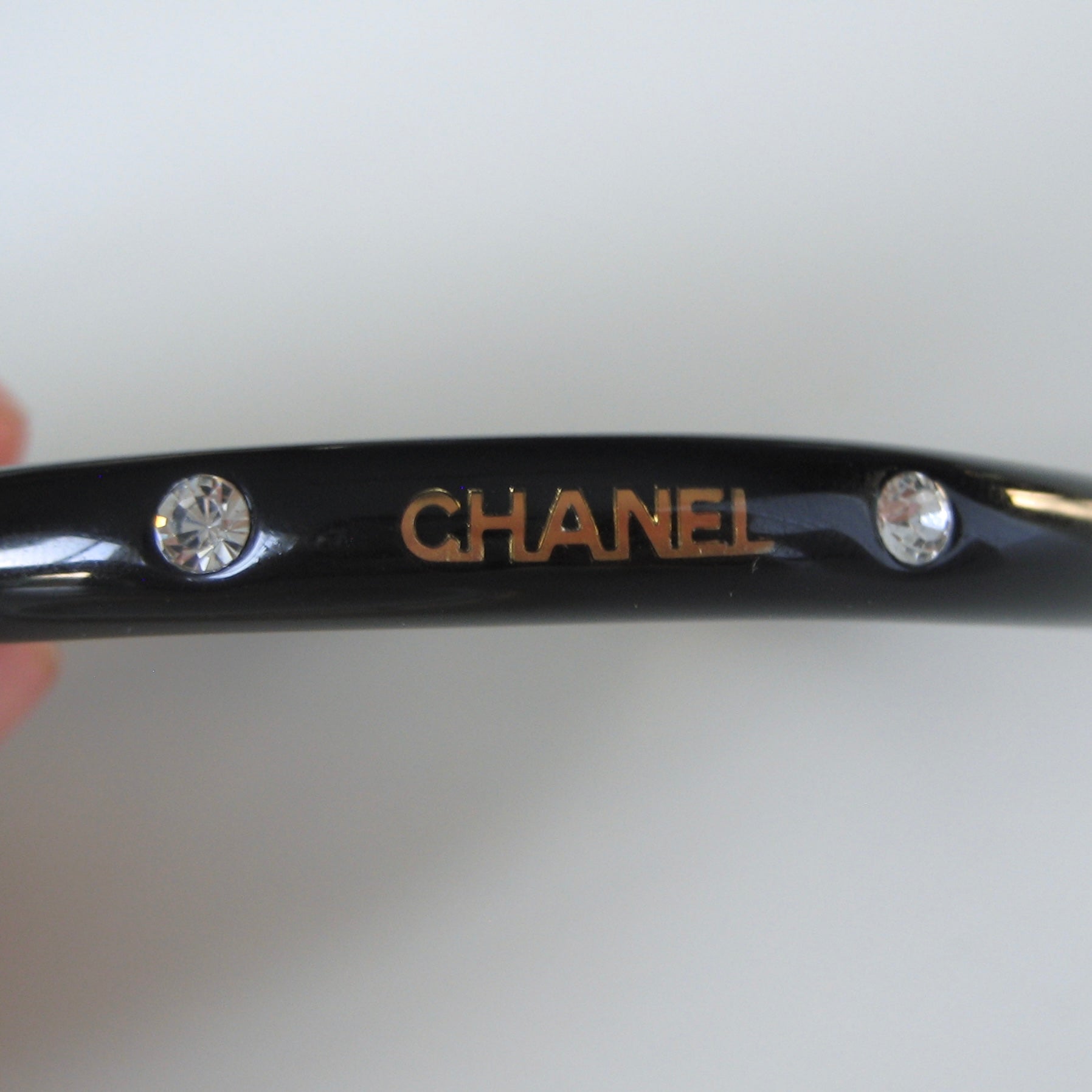 • Black bangle: gold CHANEL logo