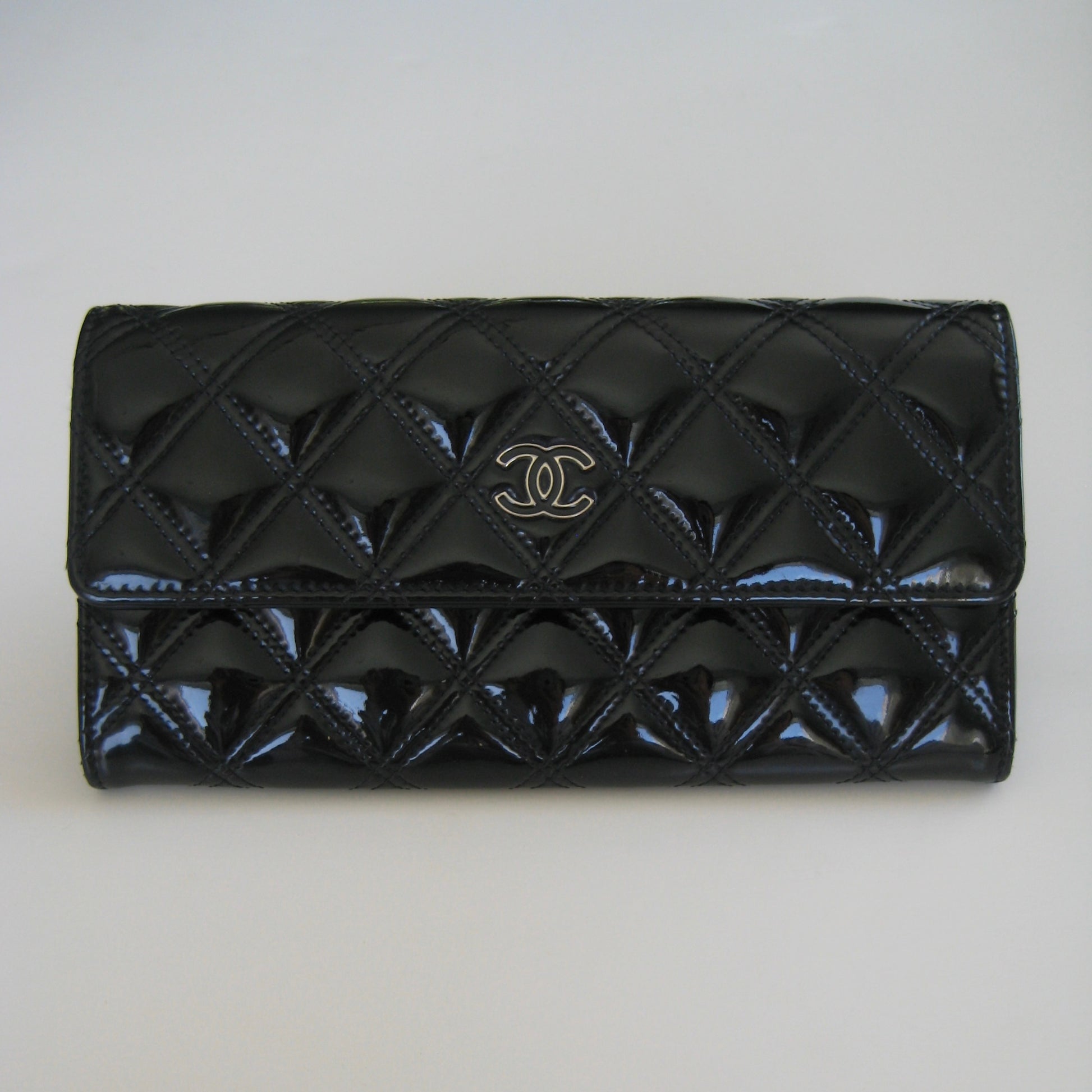 • Material: Black patent leather — ultra-glossy diamond quilting with signature CC turn-lock