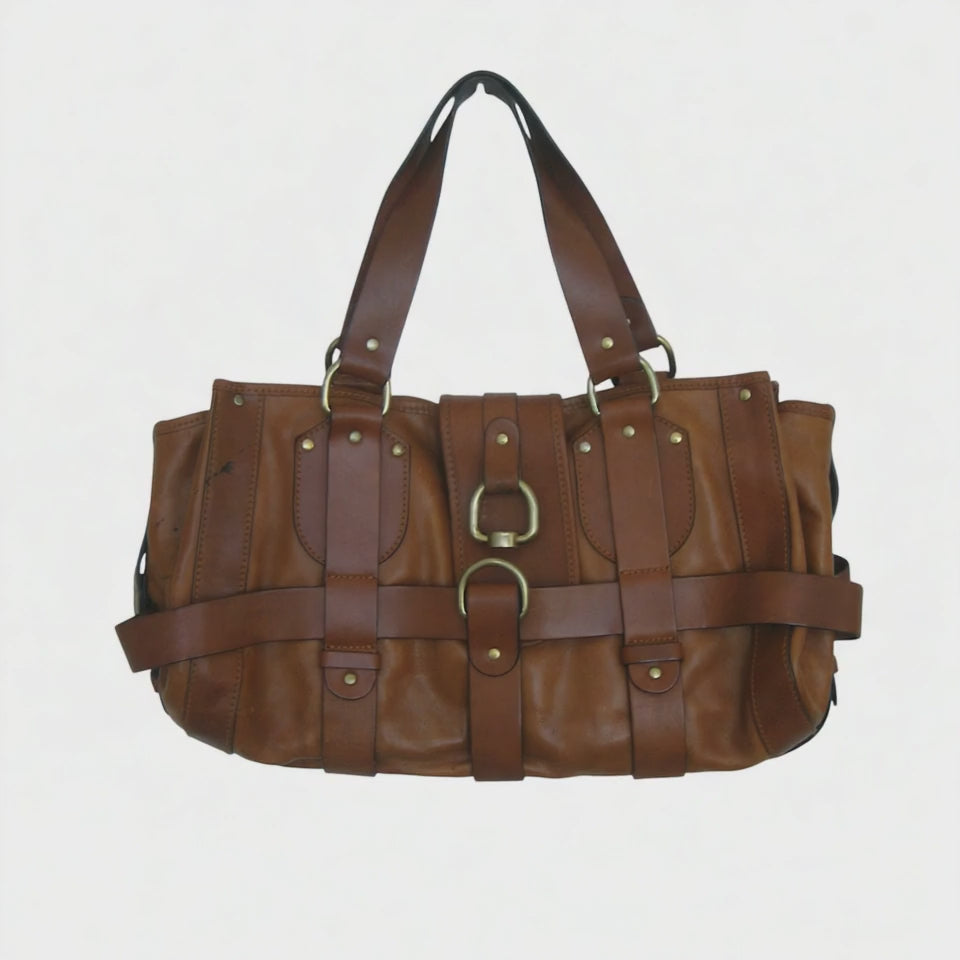 • Rich tan leather with brass-tone hardware