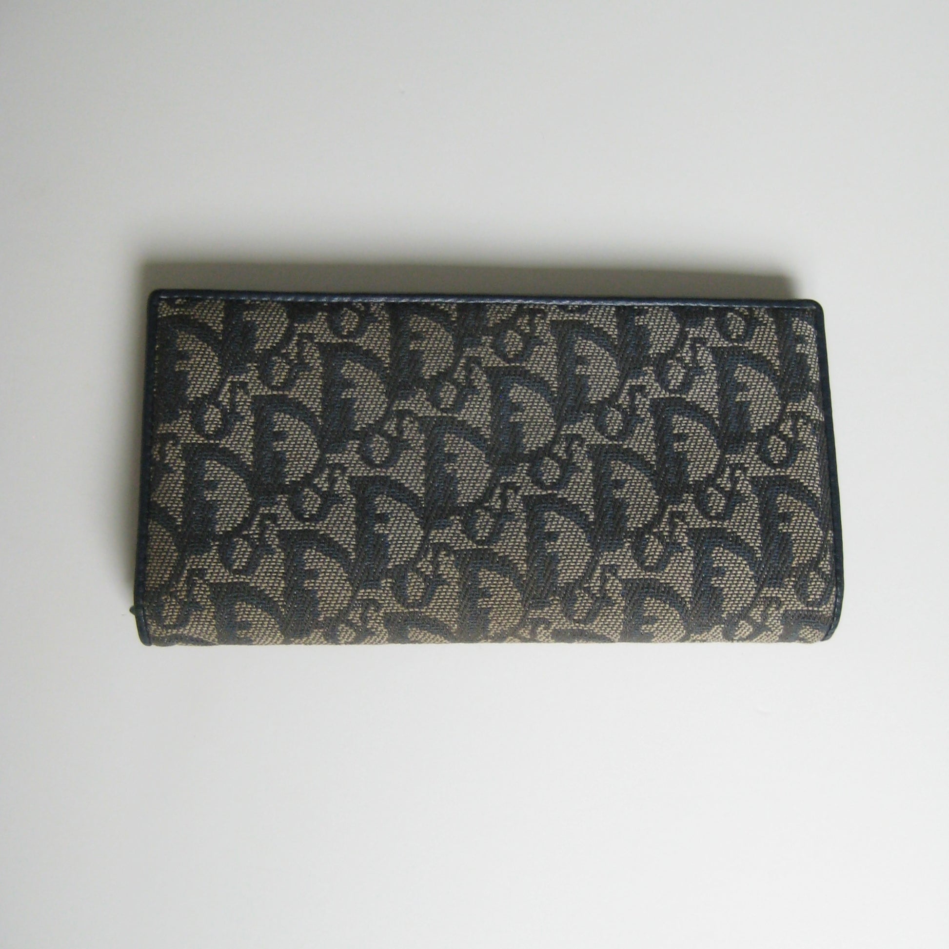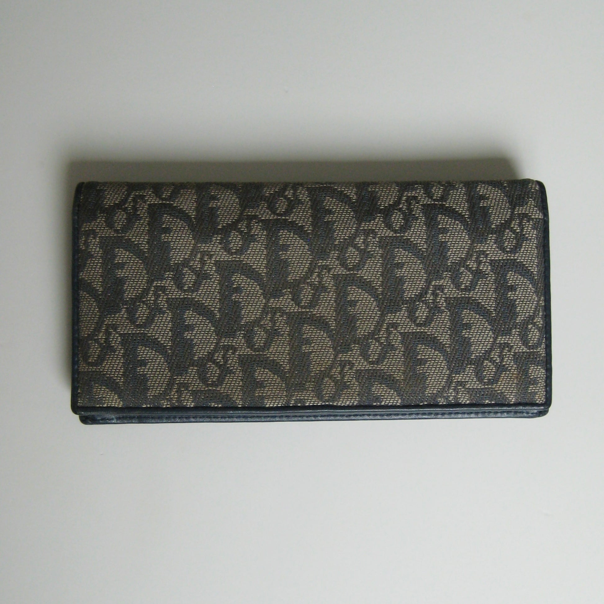 Vintage long wallet from Christian Dior, crafted in navy Dior Oblique jacquard canvas with tonal navy leather interior. Structured rectangular silhouette with flap closure. Interior fitted with card slots, bill compartments, and embossed Christian Dior Paris logo.